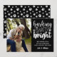 Chamando Todos Os Pássaros De Cachorro! 🐶 🎄 um Cartões de foto de Natal engraçado e simples com a citação de 'Barking Spirit Bright' em um estilo de tipografia moderna mista sobre um fundo negro. Use a modelo para adicionar seu cão ou foto de animal de estimação ou retrato da família com seu amigo Furry uma pequena mensagem personalizada e sua assinatura. O esquema de cores PRETO e BRANCO inclui sotaques de impressão de pata bonitos na parte frontal e traseira da placa. AS CORES DISPONÍVEIS DE DOWNLOAD DIGITAL SÃO EDITÁVEIS!