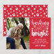 Chamando Todos Os Pássaros De Cachorro! 🐶 🎄 um Cartões de foto de Natal engraçado e simples com a citação de 'Barking Spirit Bright' em um estilo de tipografia moderna mista sobre um fundo VERMELHO. Use a modelo para adicionar seu cão ou foto de animal de estimação ou retrato da família com seu amigo Furry uma pequena mensagem personalizada e sua assinatura. O esquema de cores VERMELHO e BRANCO inclui acentuações de impressão de pata bonitinha na parte frontal e traseira do cartão. AS CORES DISPONÍVEIS DE DOWNLOAD DIGITAL SÃO EDITÁVEIS!