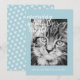 Cartão de Natal com tema de gato festivo com o texto "espiritos miando brilhantes" em caligrafia elegante e seus votos de Natal em tipografia moderna e estilosa. Basta adicionar seu texto e enviar sua foto favorita de seu gato. A parte de trás do cartão tem um padrão de flocos de neve em um fundo azul pastel. Exclusivamente projetado para você pelo Happy Dolphin Studio. Se precisar de ajuda ou produtos combinando, por favor entre em contato conosco em happydolphinstudio@outlook.com.