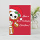 Um homem de gengibre esqueleto em um fundo vermelho. Envie um sorriso com este cartão de Natal fofo.
