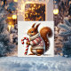 Celebre a temporada com este delicioso cartão de Natal apresentando um esquilo em um suéter de tricô aconchegante segurando um bastão de doce listrado. Um design caprichoso e emocionante para seus cumprimentos de Natal. Adicione seu toque personalizado.