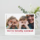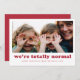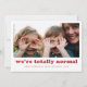 Capturar a alegria e o humor da estação com este cartão de Natal "Somos Totalmente Normais". Apresentando uma foto de família sincera, esta design abraça os momentos engraçados e bobos que tornam sua família única. O texto vermelho moderno e o layout simples oferecem um toque charmoso, mas humorístico, fazer este cartão perfeito para aqueles que querem mandar risadas com alegria de férias. Celebrar a personalidade da sua família de uma forma na moda, leve, que certamente trará um sorriso aos entes queridos. Ideal para compartilhar memórias com uma dose extra de humor de férias.