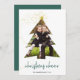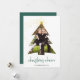 Envie cartões de natal alegres com estes belos cartões com fotos de feriado com uma imagem vertical ou vertical, dentro de um recorte de árvore de Natal moderno, erguido por uma estrela de folha de alumínio dourada. O "Natal Cheer" aparece debaixo de uma carta verde de primavera festiva, com o seu nome familiar e o ano que se segue. Adicione uma foto adicional e uma mensagem pessoal ao verso.