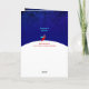 Corvo vermelho vestindo uma coroa dourada e um cachecol azul assistindo uma estrela distante. Dentro: "Feliz Natal...a uma distância"