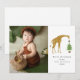 Ilustração de uma girafa no topo de uma árvore de Natal em vaso com uma estrela. Personalize com sua própria foto, nome e ano.