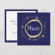 Divulgue a mensagem de paz nesta época festiva. O design moderno e dourado de estrela envolve a palavra Paz. Fundo azul. Adicione sua mensagem pessoal. Cartão perfeito para enviar a familiares e amigos para que saibam que você está pensando neles durante a época festiva.