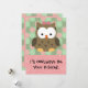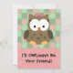 Eu serei seu amigo. Coruja amiga bonita com arco no cabelo rosa e verde. Uma saudação de dia de os namorados excelente para amigos da classe e amigos da escola.