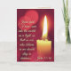 Belo cartão de Natal personalizado retrata uma vela brilhante e apresenta a Bíblia Verse John 12:46, " Eu entrei no mundo como uma luz, para que ninguém que acredita em mim fique na escuridão." A oração do dentro pode ser personalizada para a saudação de sua escolha e usada em muitas ocasiões.