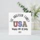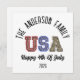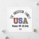 Adicione um toque festivo às suas comemorações de 4 de julho e reunião familiar/ A design apresenta uma bela bandeira americana dos EUA, com vermelho branco e azul, Isto é perfeito para abençoar seus amigos no dia 4 de julho! O destaque? Um recurso personalizado de nome da família! Adicione seu nome de família ao design, como "A Família Smith", criando um cartão de feriado único e ponderado que é realmente seu.
