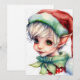 Elfo de Natal em Aguarela Fofa Usando Chapéu de Papai Noel