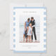Compartilhe cartões de natal com esses cartões com fotos Hanukkah apresentando seu conjunto de fotos favorito em um fundo de listras claras, azuis e brancas. Uma área de mensagem editável permite personalizar seu Chanukah ou cartões de natal. Adicione seu nome ou nomes de família abaixo com o ano.