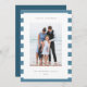 Compartilhe cartões de natal com esses cartões com fotos Hanukkah apresentando seu conjunto de fotos favorito em um fundo de listras claras, azuis e brancas. Uma área de mensagem editável permite personalizar seu Chanukah ou cartões de natal. Adicione seu nome ou nomes de família abaixo com o ano.