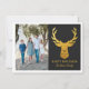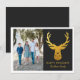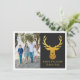Este cartão elegante apresenta uma cabeça de rena em folha de ouro falsa acima da mensagem FÉRIAS FELIZES. Personalize o cartão com uma fotografia da família e seu nome.