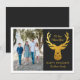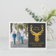 Oh Cervo Que Ano! Este cartão elegante apresenta uma cabeça de rena em folha de ouro falsa acima do sentimento FÉRIAS FELIZES. Personalize o cartão com uma fotografia da família e seu nome.