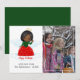 Cartão de Natal fofo com anjo vermelho e verde com influência afro-americana. Recomenda-se uma foto no formato retrato.