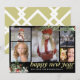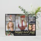 Cartão de Férias da Família de Colagem de Fotografias do feliz ano novo Winter Foliage 6 Este cartão festivo de Natal 6 apresenta uma colagem fotográfica, com folhagem de inverno e flocos de neve e diz Feliz ano novo! A parte traseira tem um design de ouro geometria que você pode excluir se preferir uma parte traseira mais simples da placa. @Miri Creations - Criado Apenas Para Você!