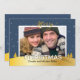Celebre a magia da época com este cartão de foto familiar personalizável de "Feliz Natal" que apresenta um cenário de inverno maravilhoso e flocos de neve cintilantes. O cartão é adornado com elegantes acentos azuis e dourados para adicionar um toque sofisticado aos seus cumprimentos de Natal. Substitua a foto placeholder pela sua própria foto e adicione o nome da sua família para criar um cartão de Natal único e exclusivo. A parte de trás do cartão apresenta neve caindo, uma saudação simples de "Feliz Natal" e texto adicional personalizável.