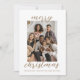 Design de "natal alegre" simples, na moda personalizado, com a moderna tipografia de um guião de ouro manuscrito e um fundo de moldura branco de neve. A imagem mostrada é apenas para fins de ilustração para ser substituída pela sua própria foto. Adicione sua própria foto e texto seguindo o link "Personalizar este modelo". Tão fácil e divertido! Seus amigos e família vão adorar receber este cartão de Natal personalizado, com um design tão único quanto sua família especial!