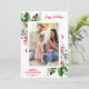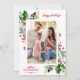 Moldura exclusiva de festas de inverno em aquarela com folhagens, frutas, foto de sua família, caligrafia elegante. Use a ferramenta Personalizar para adicionar suas informações e alterar a foto. Mais opções na minha Coleção de Fotos de Natal.