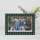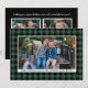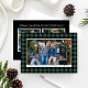 Compartilhe sua foto de férias favorita com este design de Natal com foto completa emoldurada em xadrez búfalo verde escuro e preto. Uma faixa branca limpa ao longo da parte inferior destaca o nome da sua família com um tratamento tipográfico moderno e ousado, enquanto a parte de trás apresenta um fundo preto com fotos extras e uma saudação festiva - perfeito para famílias que desejam um visual aconchegante e rústico com espaço para mostrar seus filhos.