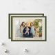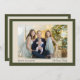 Um cartão de Natal de família atemporal com uma moldura verde-oliva elegante, uma borda marfim suave e um discreto sotaque de sage. A frente exibe sua foto horizontal favorita com “Felizes Festas” e o nome da sua família em um tipo de letra limpo e legível. O verso inclui espaço para uma segunda foto e uma curta saudação (totalmente editável) - ou troque a mensagem por uma nota mais longa. Neutro e não-denominacional, este design clássico de dois lados é adequado para o Natal, Hanukkah ou Ano Novo e imprime-se lindamente em papel mate ou brilhante.