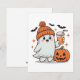 Cartão De Festividades Fantasma, Morcegos, Abóbora e Bebida, Halloween Bo