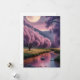 This enchanting fantasy illustration showcases a tranquil river flowing beneath a glowing full moon, surrounded by lush greenery and vibrant flowering trees. The dreamy color palette of purples, pinks, and soft greens creates a magical, calming atmosphere that feels both surreal and serene. With its balanced composition, reflective water, and celestial focus, this artwork is perfect for lovers of fantasy landscapes, moonlit scenes, and imaginative nature-inspired visual art.