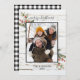 Este cartão com fotos festivo, aconchegante, estilo fazendeiro, mostra sua foto com uma trilha preta, 'Feliz Natal' em um roteiro escrito à mão, um fundo branco de madeira em celeiro, e um inverno festivo verde-aquarela e bagas. A parte traseira da placa apresenta uma xadrez de búfalo preto e branco. Copyright Anastasia Surridge para o Compro de Natal, todos os direitos reservados.