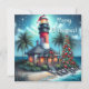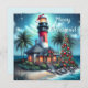 Cartão De Festividades Farol Tropical de Natal Whimsical Vermelho Teal