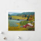 Cartão de Férias da Fazenda Vinícola Ensolarada em Augusta, Missouri, apresentando um celeiro, um lago e árvores coloridas. De uma pintura original a óleo de Daniel Fishback.
