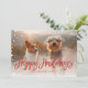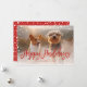 Divulgue alegria nesta época de festas com este cartão de Natal elegante com o seu amigo de quatro patas favorito, apresentando uma escrita à pincel que diz "Félicés Natalícias" e vem com um padrão de neve no verso.