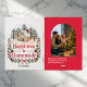 Celebre a calidez da estação com este cartão de Natal de casa rústica "Felicidade é Caseira". Com uma encantadora cabana de inverno ilustrada, cercada por árvores, pinhas e detalhes festivos, o design destaca a sensação aconchegante de lar para as festas de fim de ano. O verso inclui espaço para a foto da sua família e mensagem de Natal pessoal, tornando-o uma forma sincera de enviar alegria para os entes queridos. Perfeito para famílias que amam vibrações natalinas tradicionais, rústicas e aconchegantes.
