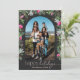 Cartão De Festividades Felicidades de Foto Férias Cinza Escuro Rosa Verde