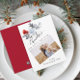 Espalhe alegria Nesta época de festas com este simples cartão de Natal elegante. apresenta letras desenhadas à mão "Feliciz Natal" minimalistas e elegantes e uma foto quadrada moderna com um enfeite de Natal vermelho floral aquarela. Fácil de personalizar com a foto da sua família e o nome. Veja o item correspondente na minha loja "DreamHut".