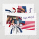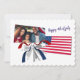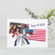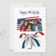 Feliz 4 de julho é uma composição do Cartão Feriado de Independência e contém vários elementos personalizáveis. No lado esquerdo, na forma de uma bandeira, há um lugar para inserir sua foto, ou qualquer logotipo ou símbolo de sua escolha. Do lado direito também. Todas as inscrições podem ser alteradas. Um presente interessante para um grande feriado.