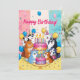 O "Cartão de Férias de Bolo de Bolo de Boas Festas de Aniversário Feliz" é um cartão de boas-vindas, encantador e versátil, com festa de aniversário de animais de desenho animado. Este cartão mostra personagens de desenho animados adoráveis celebrando um aniversário com bolo e balões. Veja a minha coleção de cartões de boas-vindas e feriados em www.zazzle.com/basereality