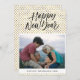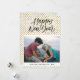 Comemore o Ano Novo com este simples, chico, elegante e moderno cartão com fotos de Ano Novo com a palavra "Feliz ano novo 2021" e sua mensagem de saudação personalizada e seu nome de família na tipografia moderna, à frente. Inverter para revelar um belo fundo do padrão de pontos de ouro branco de cheio.