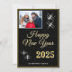 Cartão de Férias Moderno e Elegante Feliz Ano Novo 2025 Foto Elegante com Brilhos. Brilhos brancos em um fundo preto e em uma fonte moderna. Adicione sua foto na frente e seu desejo no verso.