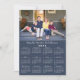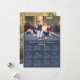 Deseje aos amigos e à família um Feliz ano novo com um cartão de feriado personalizado com sua foto e saudações no calendário de 2026 na frente e outra foto no verso. Substitua as fotos e o texto de exemplo na barra lateral. O texto personalizado está em uma fonte legal de script manuscrito branco. Abaixo está um calendário branco fácil de ler em um fundo azul marinho. Você pode remover o logotipo Zazzle na parte traseira da barra lateral. Placa e design de calendário © Claire E. Skinner. Todos os direitos reservados. Fotografia © Storytree Studios, Stanford, CA