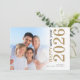 Feliz ano novo de Texto Rotação de Foto Moderna 2026 Dourado. Disponível digitalmente e impresso. Uma tipografia de na moda girava lateralmente para a direita e adicionava sua foto favorita à esquerda para substituir a imagem de exemplo.