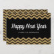 Feliz Ano Novo Dourado Brilho Listras Pretas Chevron Cartão de Férias