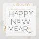 Um belo design com a mensagem 'Feliz ano novo' em lindos textos de cinza para um Cartão de Ano Novo na moda. O ano e o texto personalizado adicional. *Folha de ouro falsa de bônus nas costas com Sinal Novo Feliz