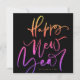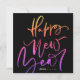 Um belo design com a mensagem 'Feliz ano novo' em lindos textos tropicais para um Cartão de na moda de Ano Novo.