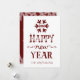 Cartão De Festividades Feliz Ano Novo Vermelho e Branco Encantador
