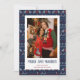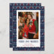 Cartões de natal personalizados de anúncio de casamento de fotos perfeitas para o casal recém-casado. Personalize facilmente esta feliz de suéter azul e vermelha e feia e casou cartões de Natal com a sua fotografia e nomes. Mais opções de cores disponíveis.