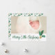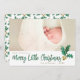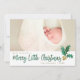 Enviar Feliz Pequenos desejos de Natal para amigos e familiares com este simples, sofisticado, mas divertido, design de folha de ouro e verde com aspecto aquarela. As folhas sagradas são uma aparência falsa de folha de ouro, e a cor do texto corresponde às folhas sagradas. Mude o nome da família para o seu ou use o seu nome ou nome do bebê. Este cartão é datado com o ano, e o verso apresenta um padrão de folha holly verde e dourada de cor aquática correspondente.