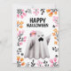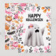 Cartão De Festividades Feliz Dia das Bruxas Fantasma com Flores Pastel