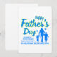 Feliz Dia dos Pais - O homem justo anda em sua integridade; Seus filhos são abençoados depois dele - Provérbios 20:7 Dia dos Pais Escritura Bíblica Texto Azul com pai e filhos juntos Design.