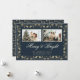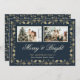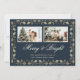 Elegante foto personalizada azul e dourada Cartão de Natal Merry com ouro holly sobre fundo azul escuro. Personalize facilmente esta Feliz fotográfica e este cartão de férias Brilhante com as suas fotografias favoritas e o nome da família.