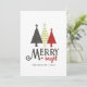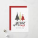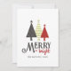 Cartão elegante, único, simples, preto branco e Feliz vermelha e moderno Brilhante de Natal, com pinheiros coloridos e foto atrás.